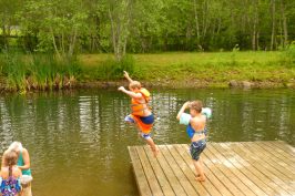 All three families (and the volunteers, too) had a great time. And let’s not forget the Ther-a-Playdate families that joined us on the Saturday afternoons. The hot weather had us leaning towards pond activities on every day of each camp, although horse play was still a central part of the program. An important part of our programming is helping older teenagers who may still be coming as clients, but are also volunteers. Four young adults who began as clients were very active at this year’s camps.